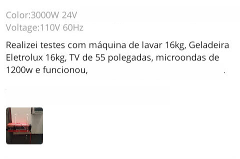 Atenção! Seus Equipamentos NÃO DEVEM ULTRAPASSAR a Potência Real de Trabalho do Inversor, Como Mostra A Imagem Abaixo